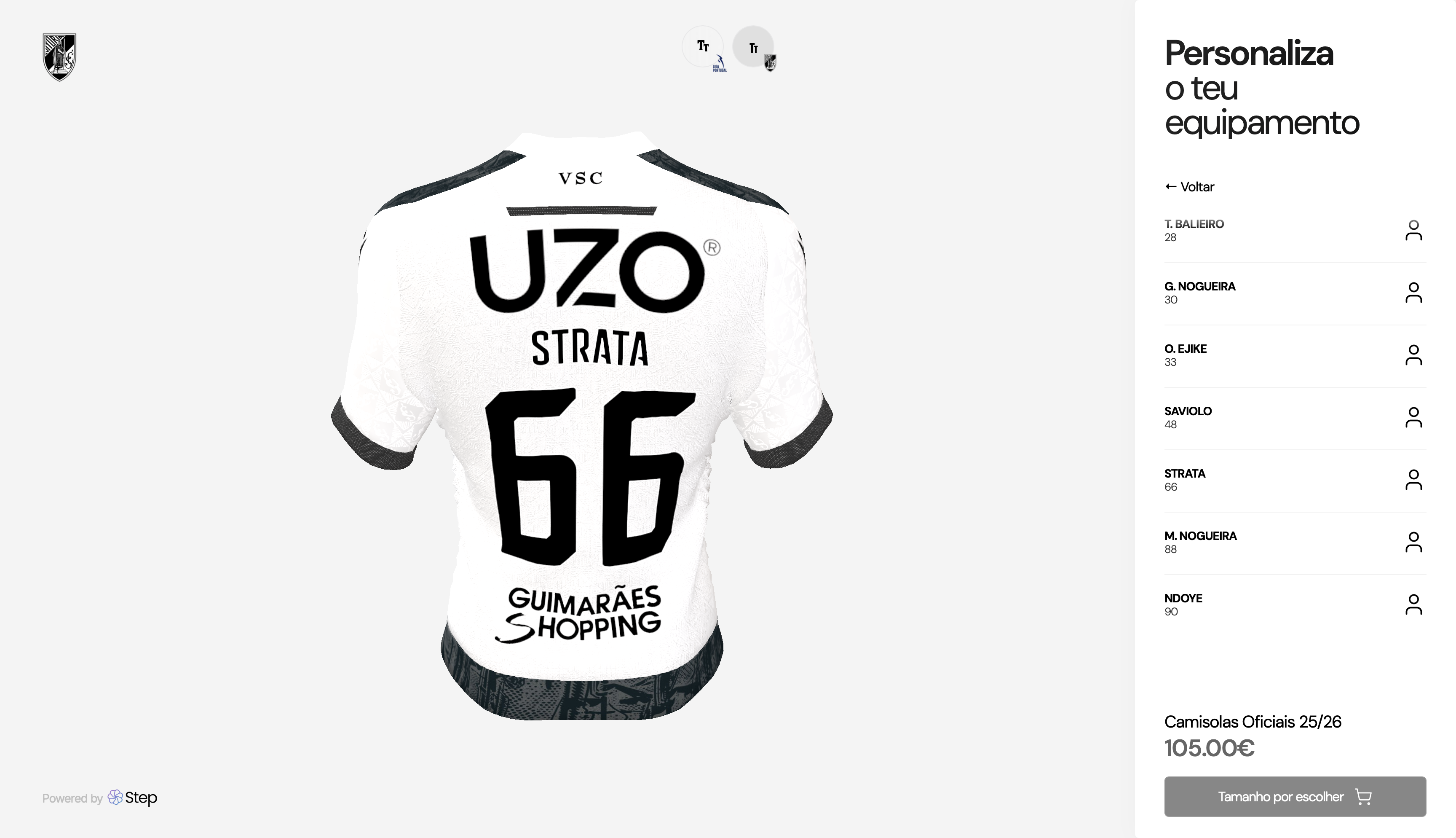 O Step Kit OS é uma plataforma digital criada para clubes desportivos personalizarem e gerirem os seus equipamentos. Com um simulador visual em tempo real, os clubes podem desenhar, pré-visualizar e encomendar kits diretamente. Atualmente utilizado por clubes como Vitória SC, FC Vizela e CD Feirense SAD.